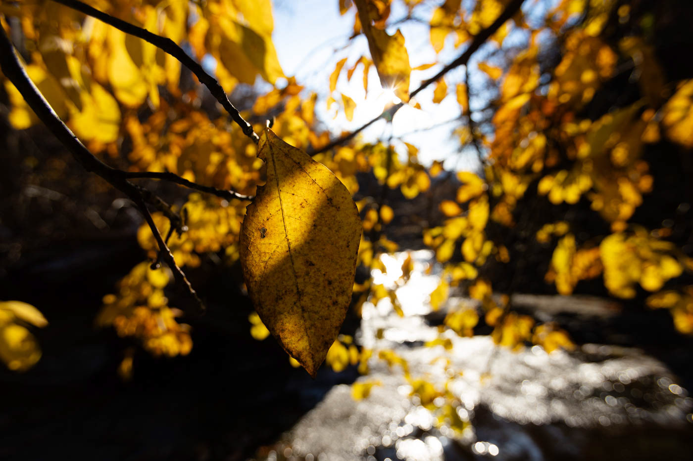 Sunlight through trees on Upper Overall Run Falls near Matthews Arms.